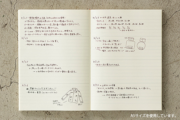 < A5>   既便於隨身攜帶、也可攤開在桌上書寫,是筆記本中最宜人的大小
