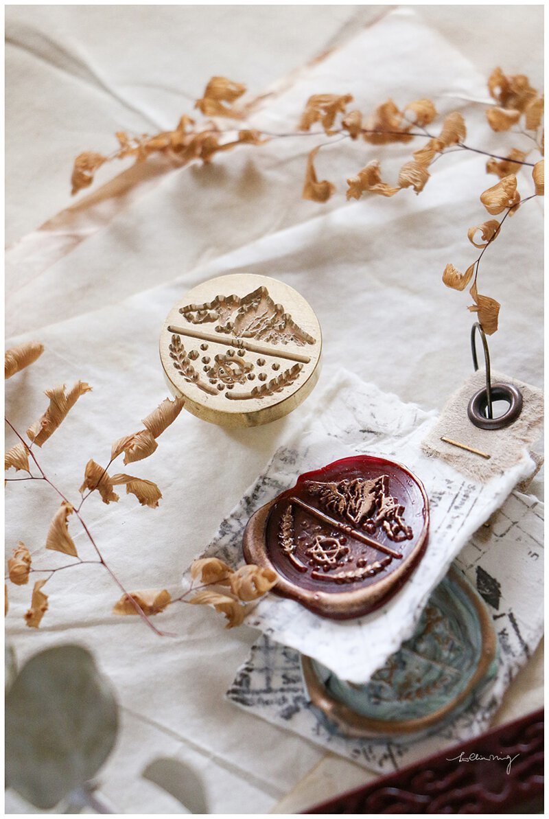 皆附手工蓋印封蠟的收納小布袋+一條帶棉芯封蠟 /