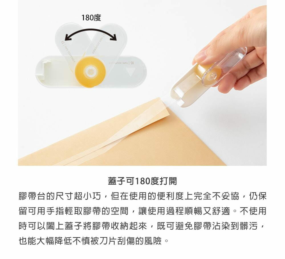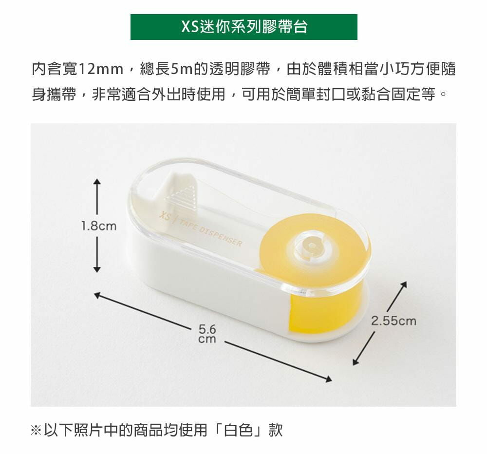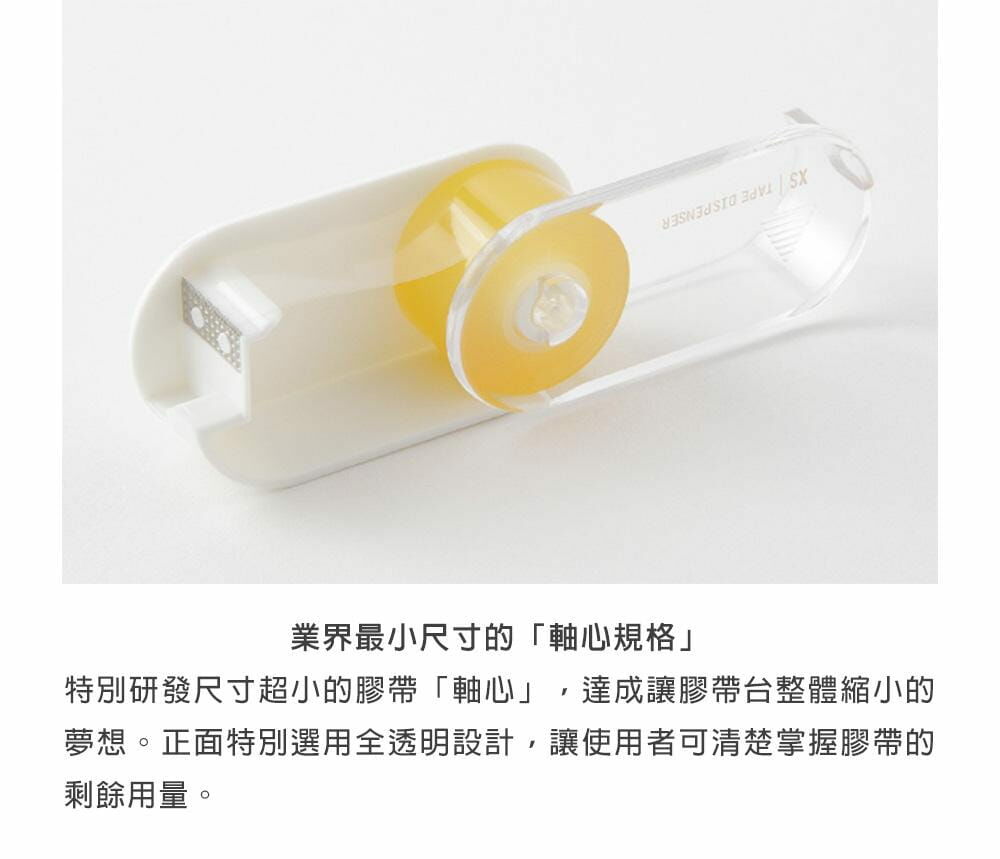 超小型尺寸膠帶台,可內裝122m寬x5m長度的透明膠帶。