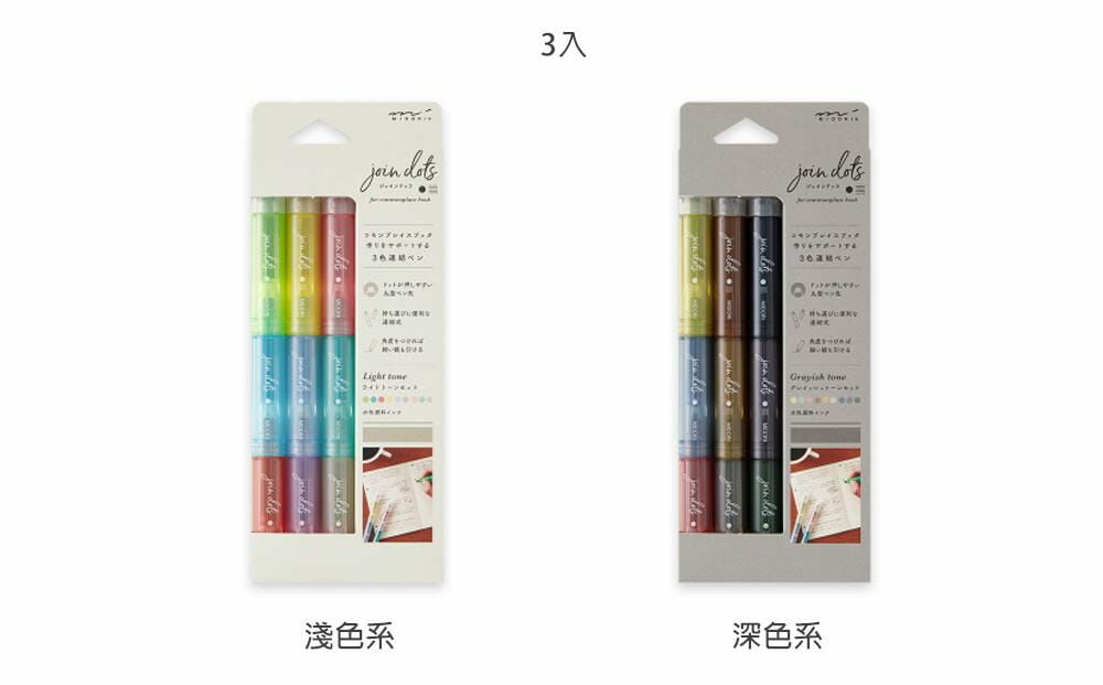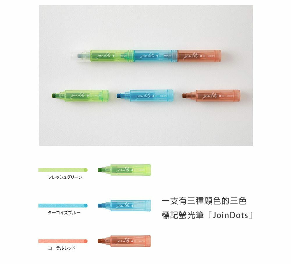 一支有三種顏色的三色標記螢光筆『JoinDots』
