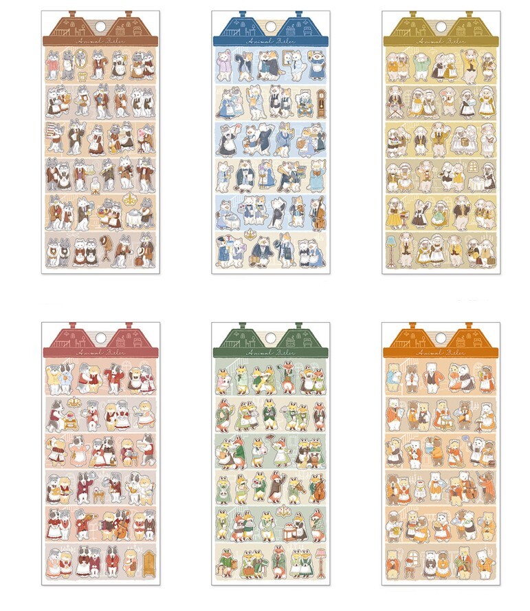 這系列貼紙描繪了居住在古典宅邸中動物管家的日常生活