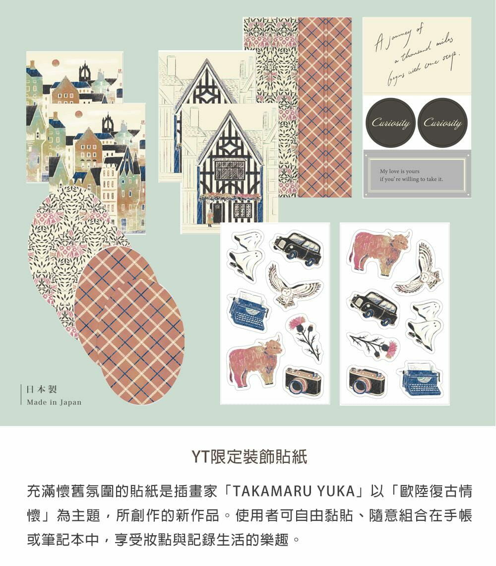本系列充滿懷舊復古氛圍的貼紙是插畫家「TAKAMARU YUKA」以「歐陸復古情懷」為主題,所創作的新作品。