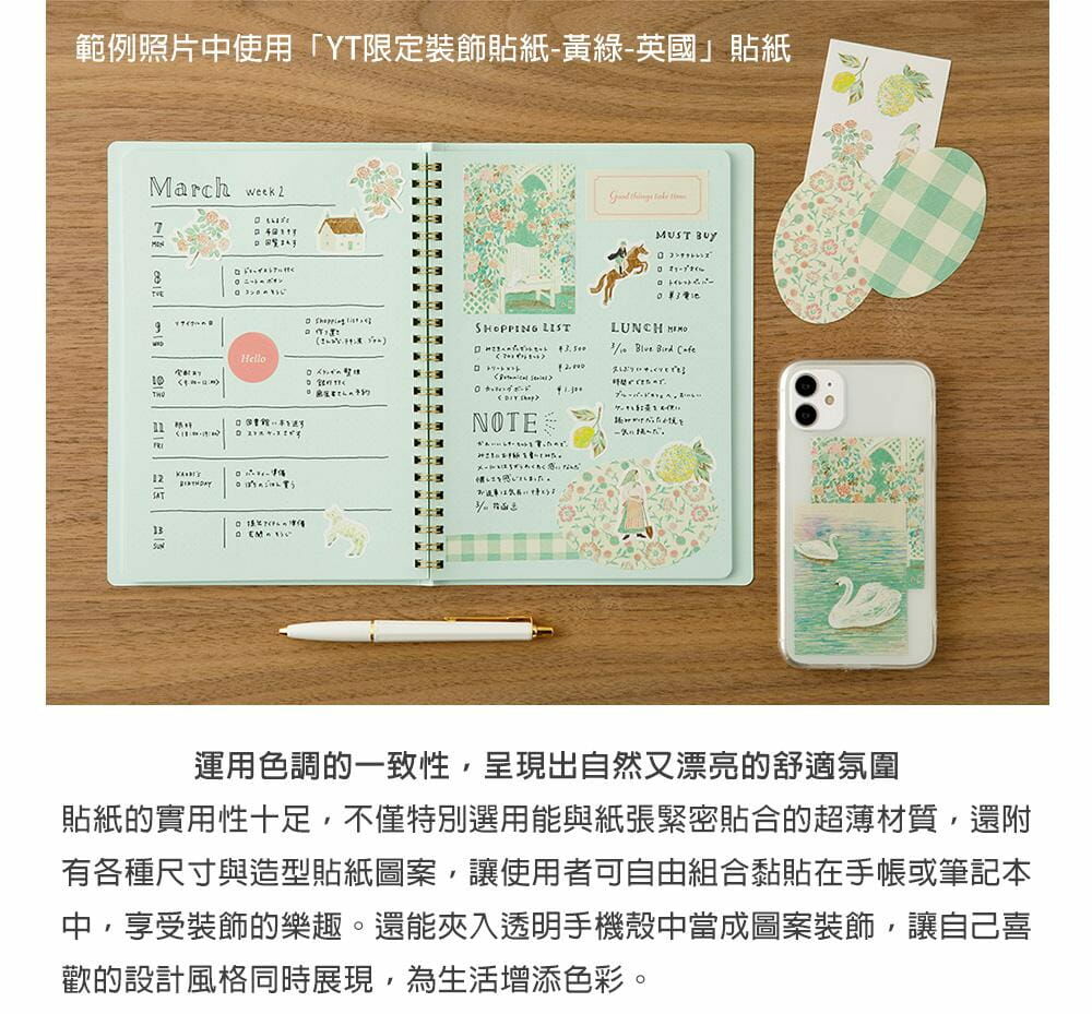 使用者可自由黏貼、隨意組合在手帳或筆記本中,享受妝點與記錄生活的樂趣。