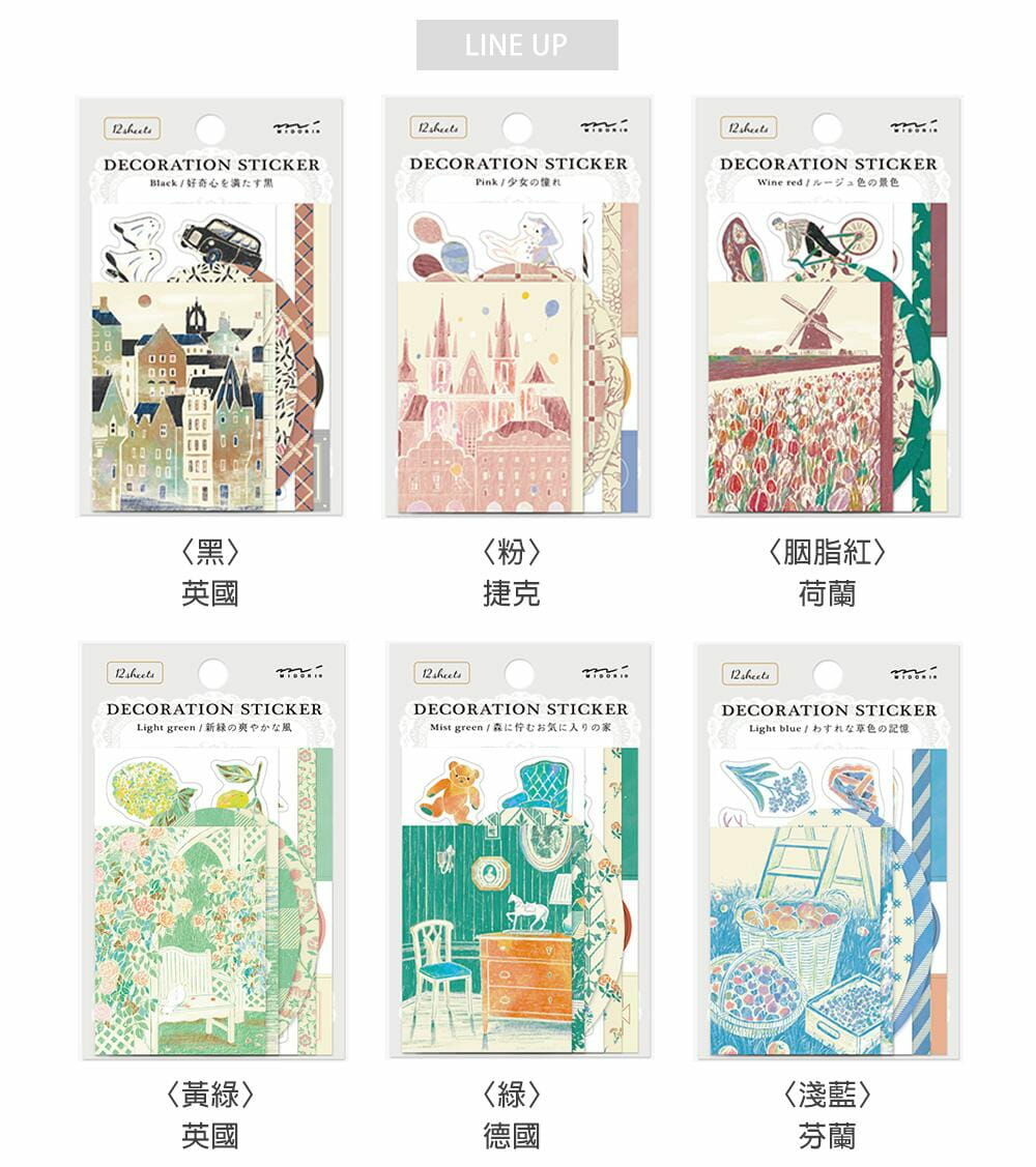 YT限定 歐洲復古系列 12入貼紙包|日本MIDORI