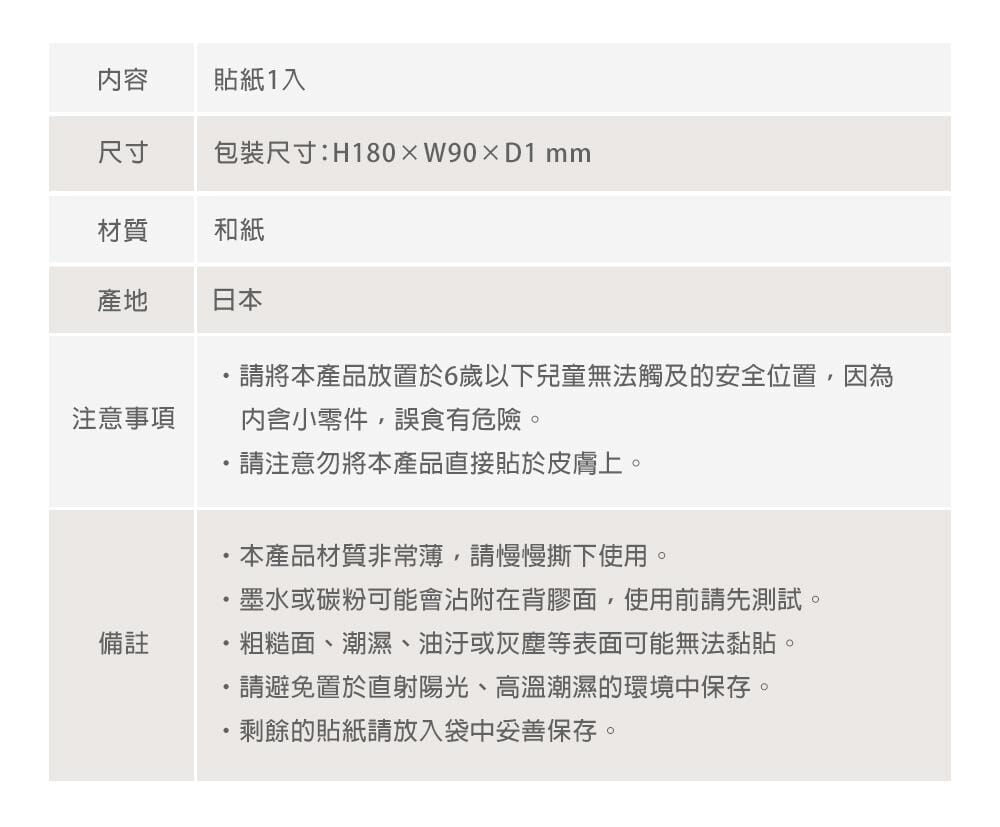 1枚入,薄透和紙貼紙