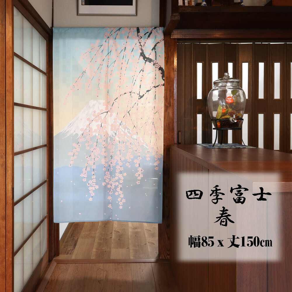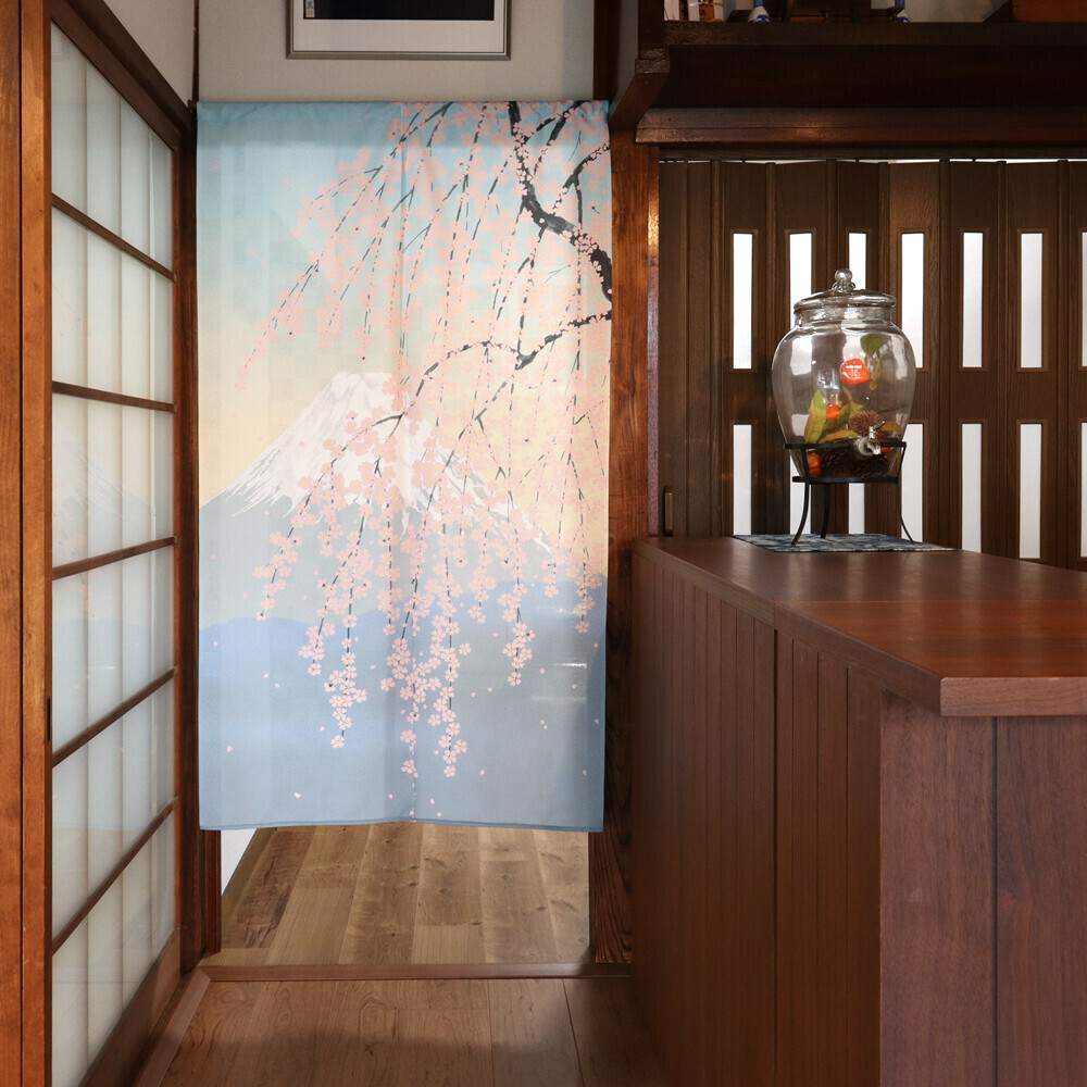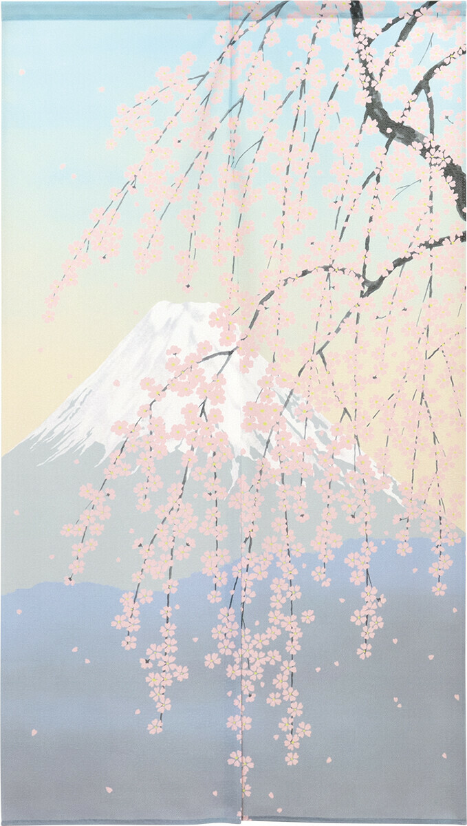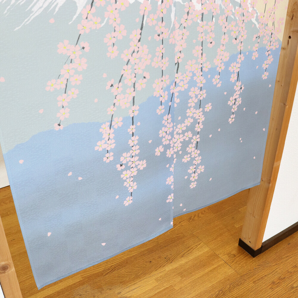 春天的富士山 櫻花富士 長暖簾 門簾 150cm|日本製 のれん工房