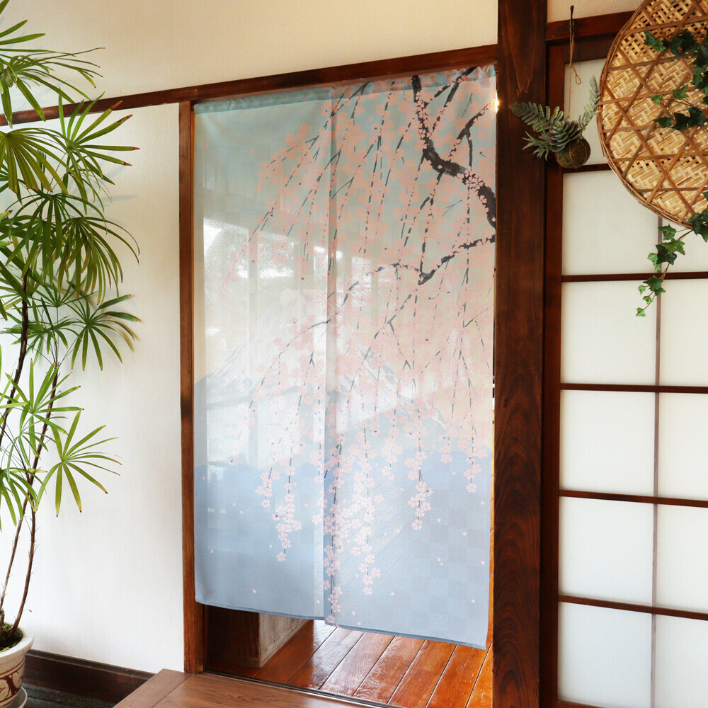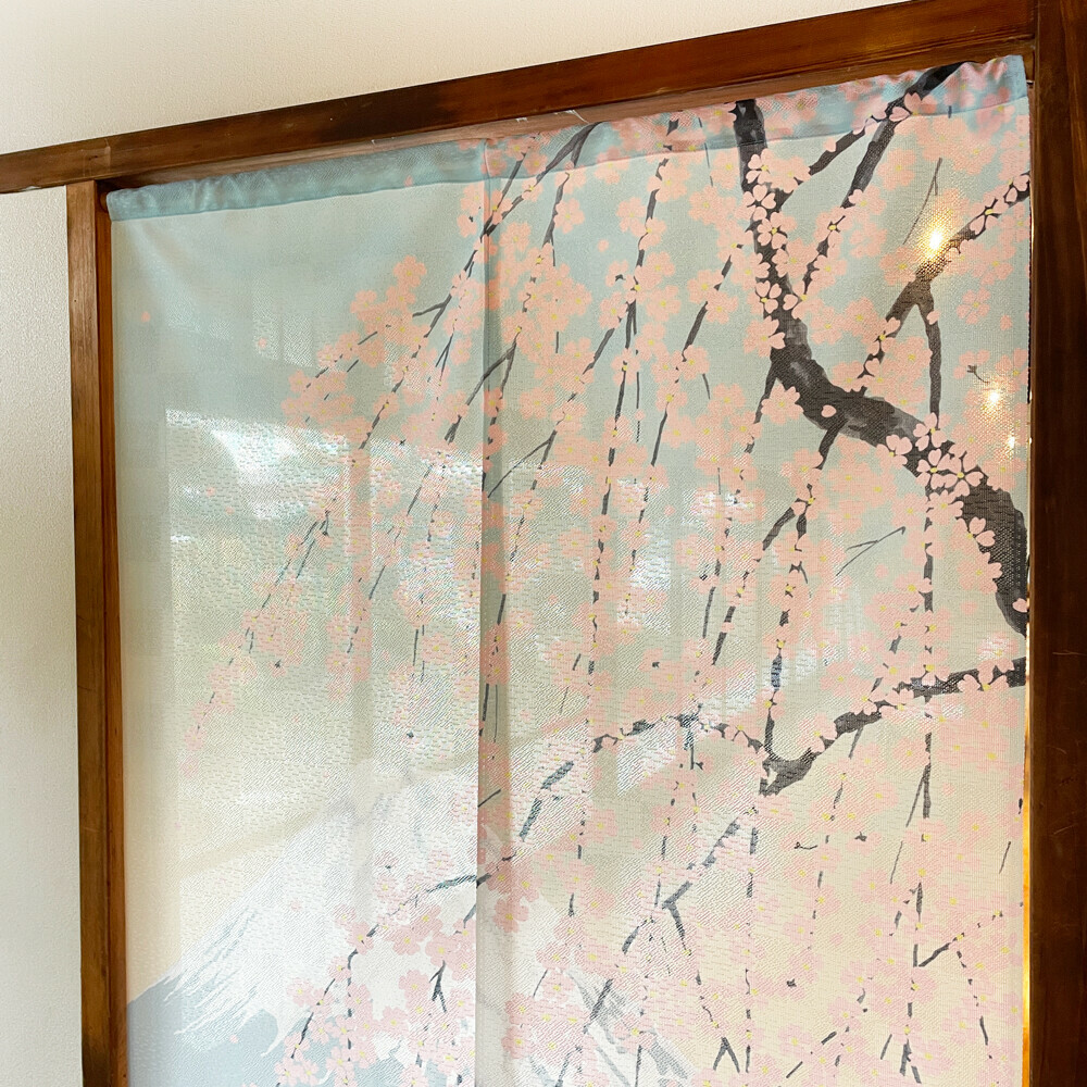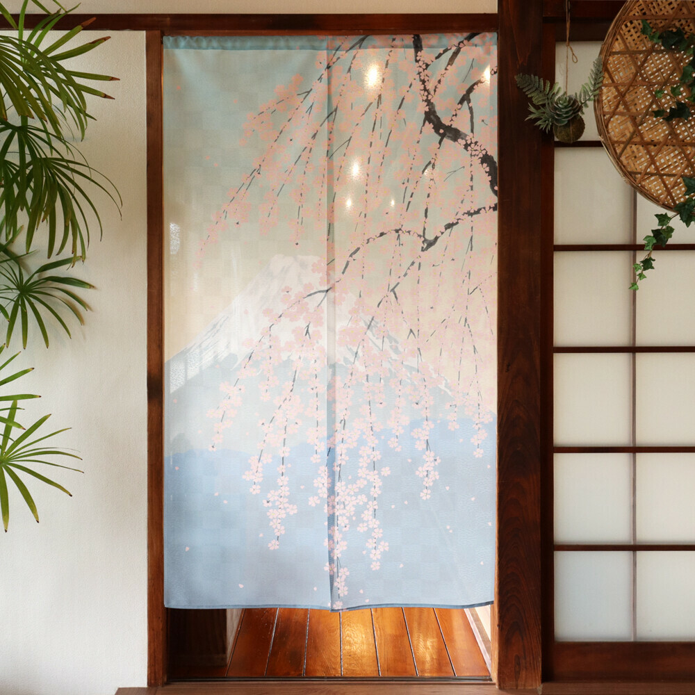 春天的富士山 櫻花富士 長暖簾 門簾 150cm|日本製 のれん工房