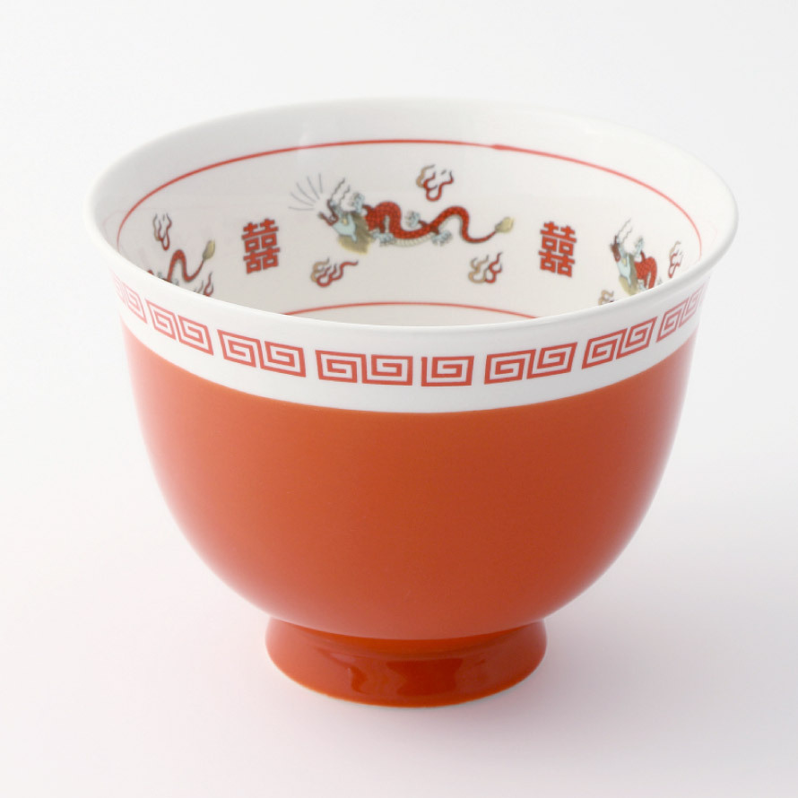 帶有中國風的拉麵碗,圓潤輪廓和有深度的碗型非常可愛,能想像盛裝著拉麵熱騰騰的模樣,擺放在餐桌上很有復古氛圍,搭配碗邊上的吉祥插圖格外有趣