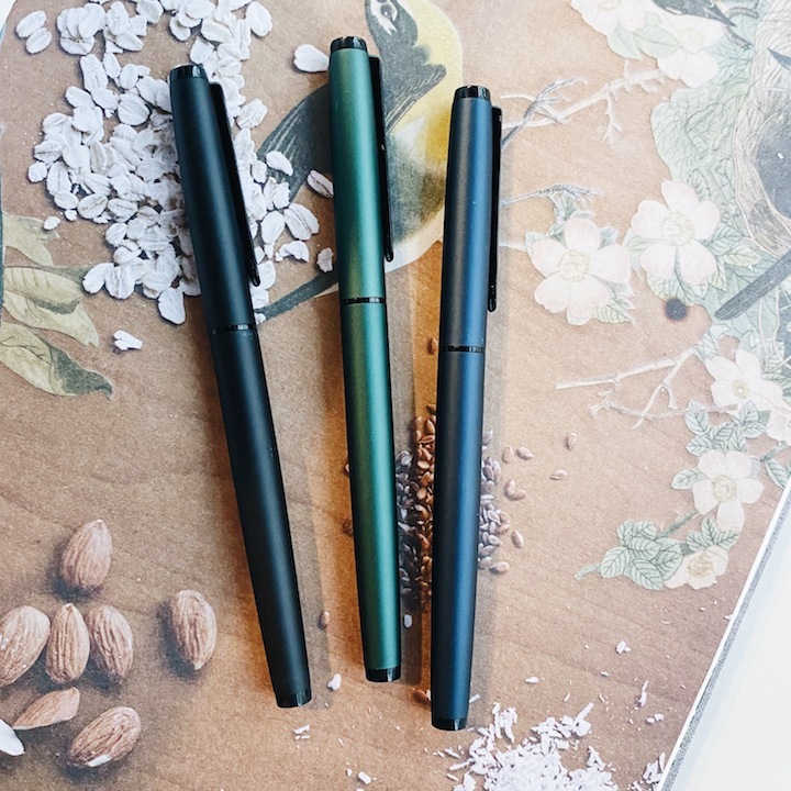 筆桿採用鋁合金金屬車製,表層砂面陽極電鍍及鍍黑金屬零件。