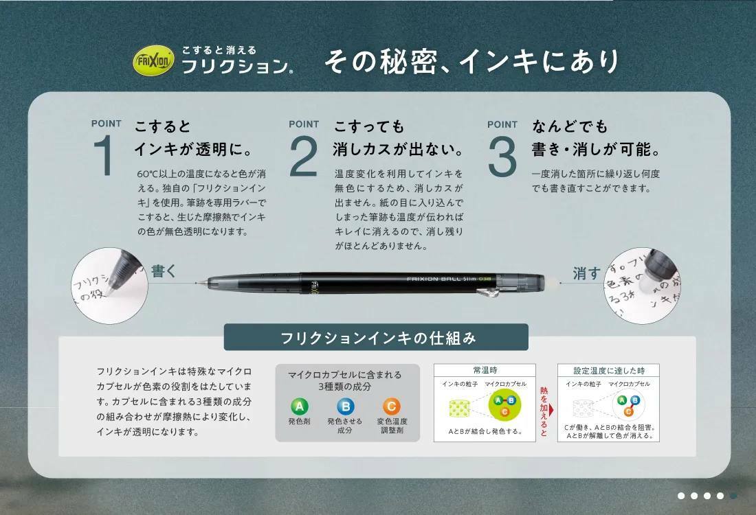 ●熱隱形墨水,如鉛筆一樣便利又能呈現原子筆的書寫質感。