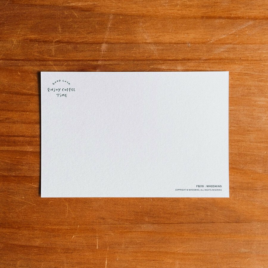 這張明信片是WHOSMiNG在台灣受到COVID-19疫情影響時所創作。藉著再次引進京都Kurasu的聯名豆,希望用咖啡療癒人心。