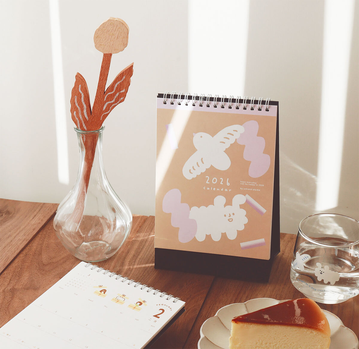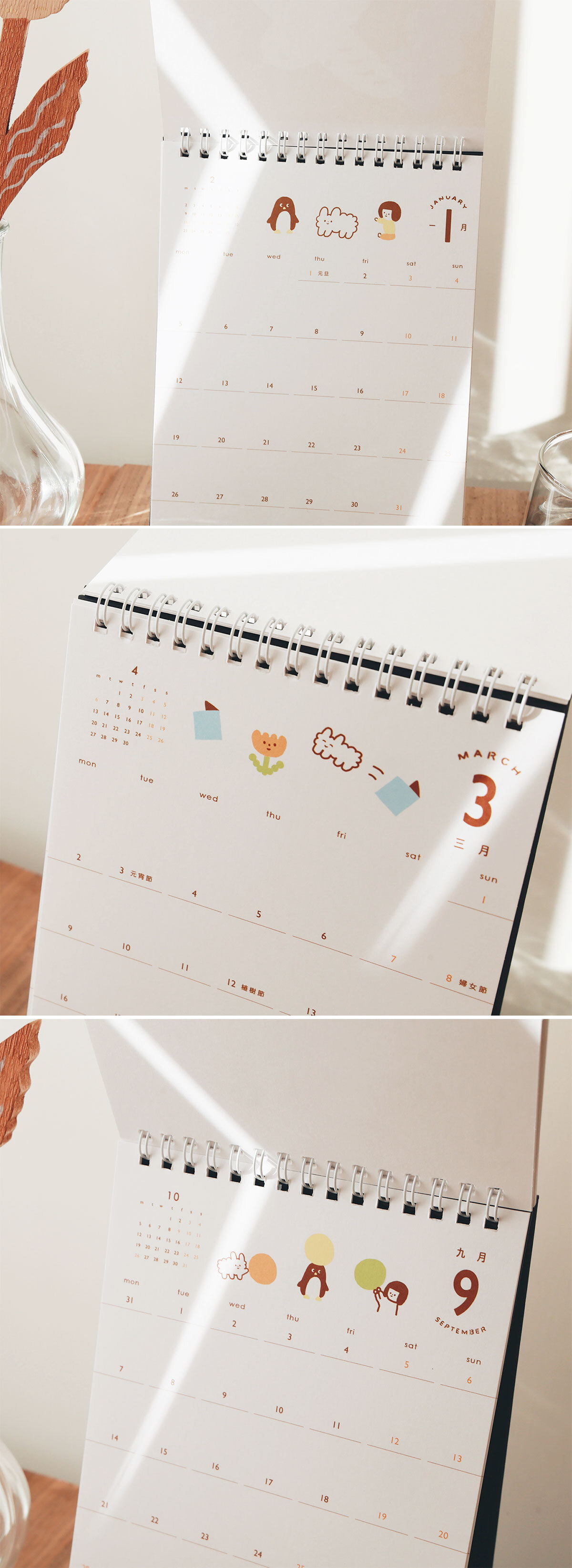 桌曆的每個月都有不同的右手超人和狗狗雲