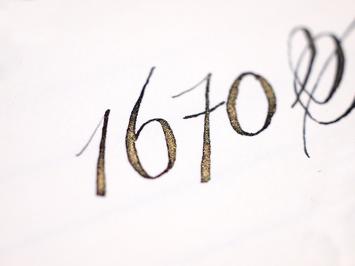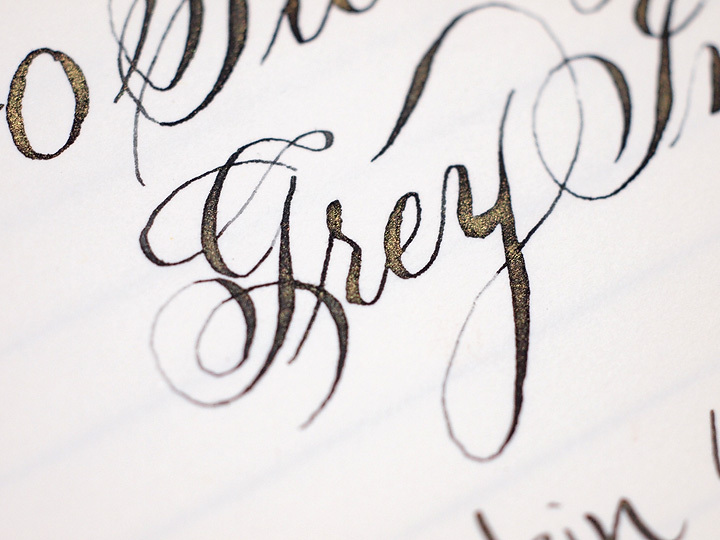 此系列墨水帶金粉,粉質細緻,可以用於鋼筆書寫,在出墨量大時亮粉能夠有優異的表現。