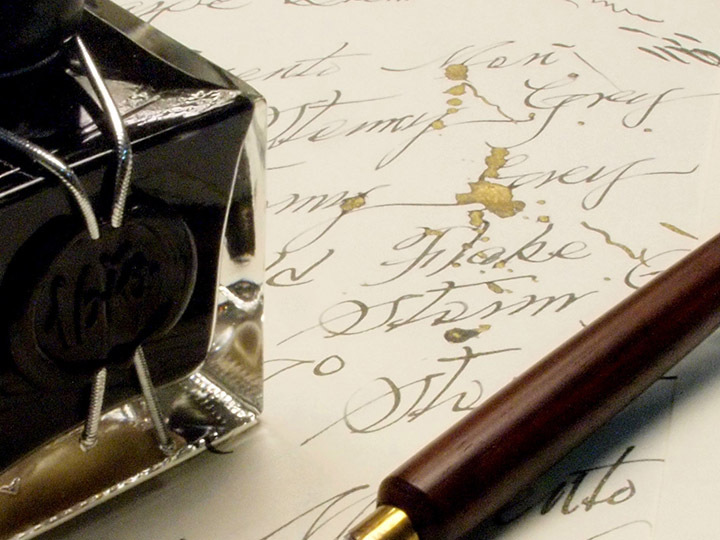 使用前請先將沉澱在瓶底的金粉搖晃均勻之後再吸取或沾取墨水,以達到金粉平均分布的狀態