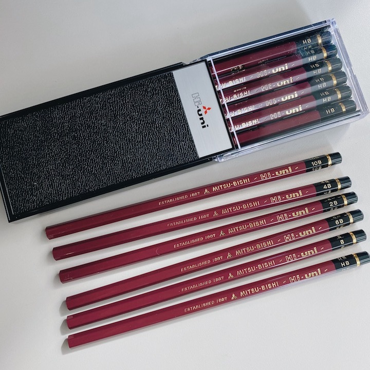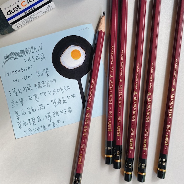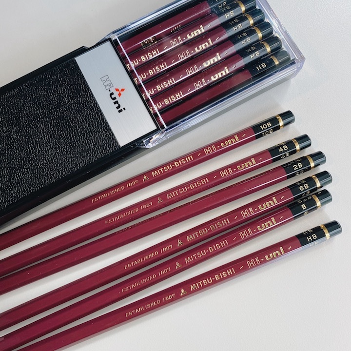 日本製MITSUBISHI三菱鉛筆,其中Hi Uni為最頂級的一款商品,它在鉛芯的製造上更加講究,寫起來比uni滑順,但鉛芯損耗更小。