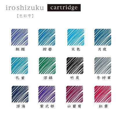 顏色:朝顔、紺碧、天色、月夜、孔雀、深緑、竹炭、冬将軍、深海、紫式部、山葡萄、紅葉 12色