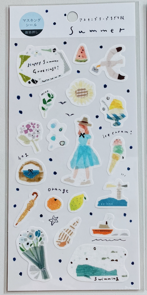 夏日Summer (燙銀) 紙膠帶拼貼風 和紙貼紙 J-243|日本田村美紀