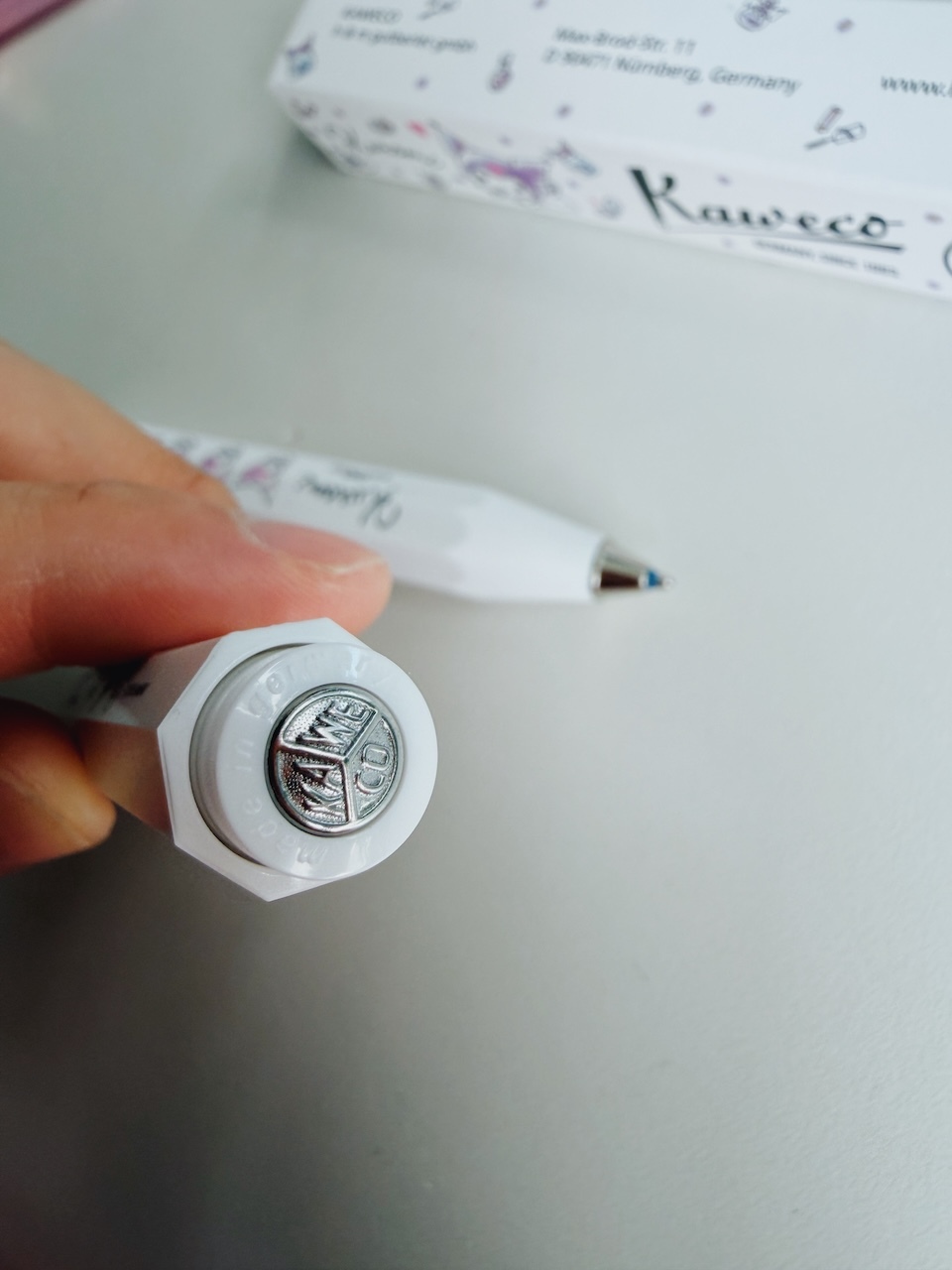 白色筆身 × 銀色品牌標誌 × 銀色筆