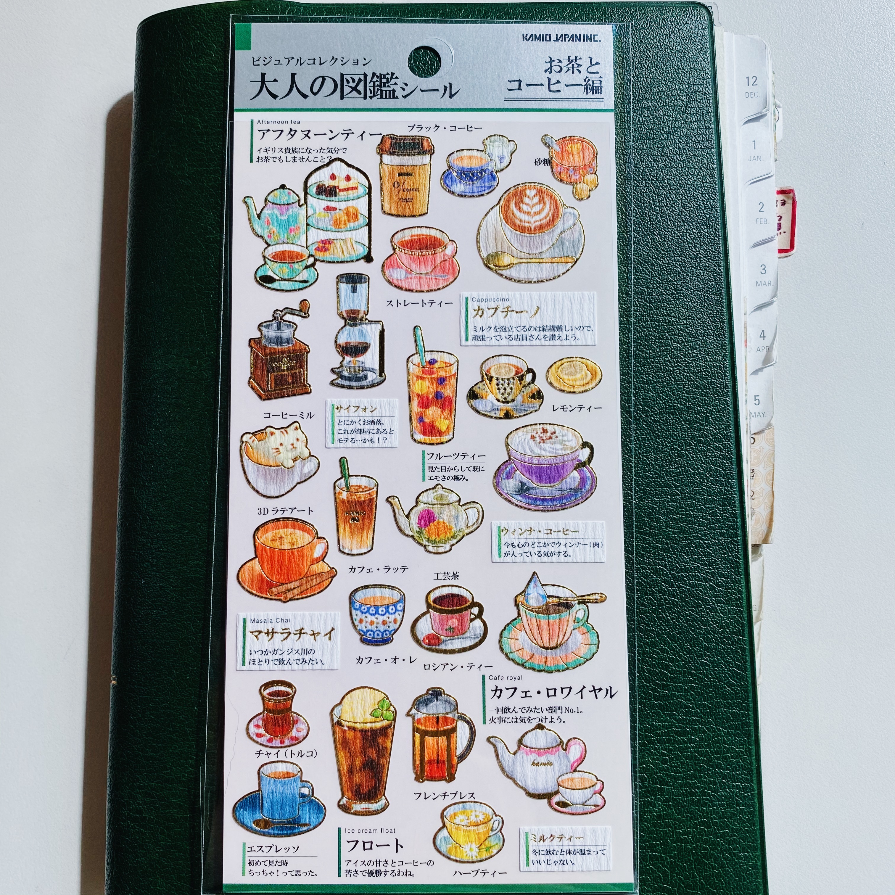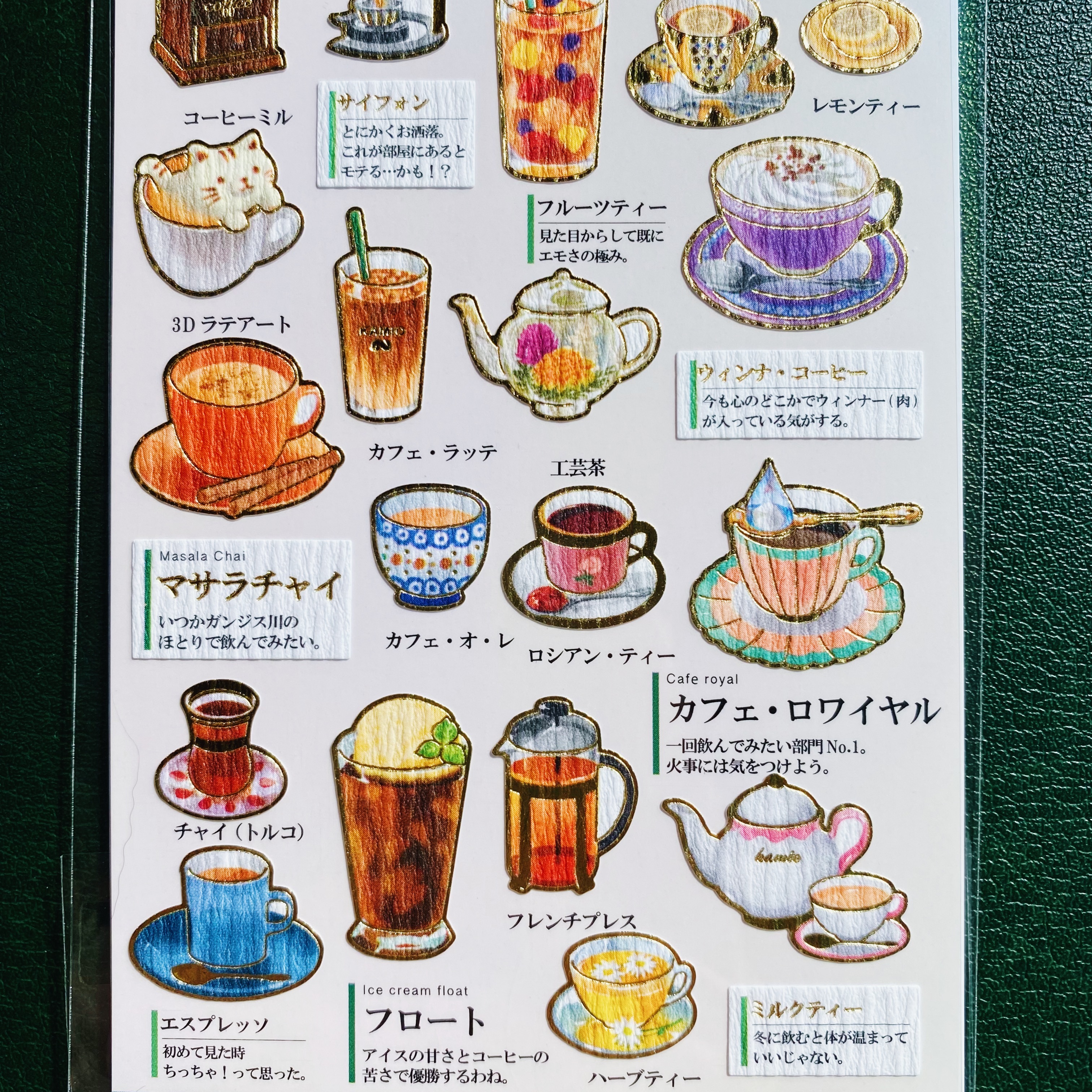 咖啡和茶 Kamio 大人的圖鑑系列 金箔壓印手帳貼紙