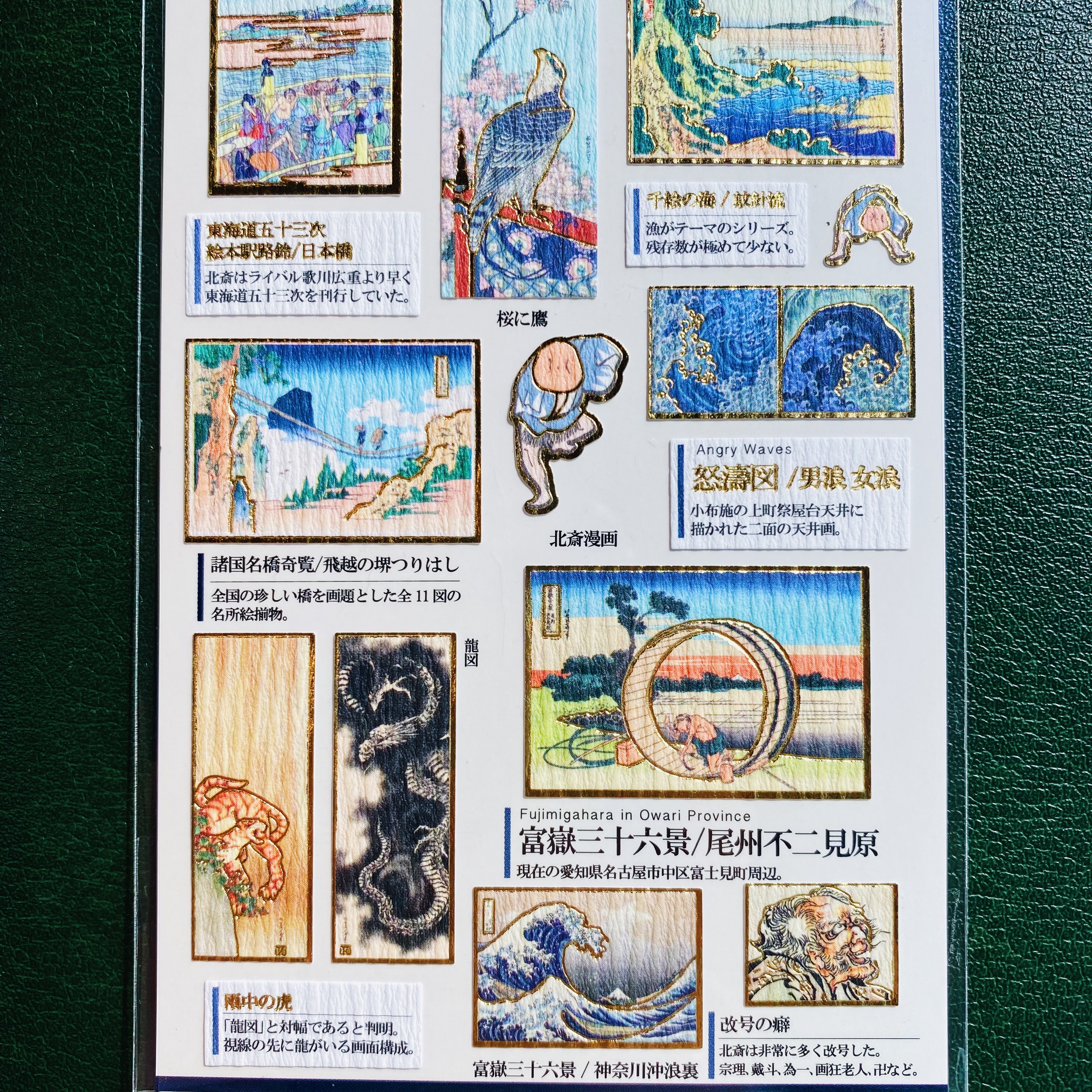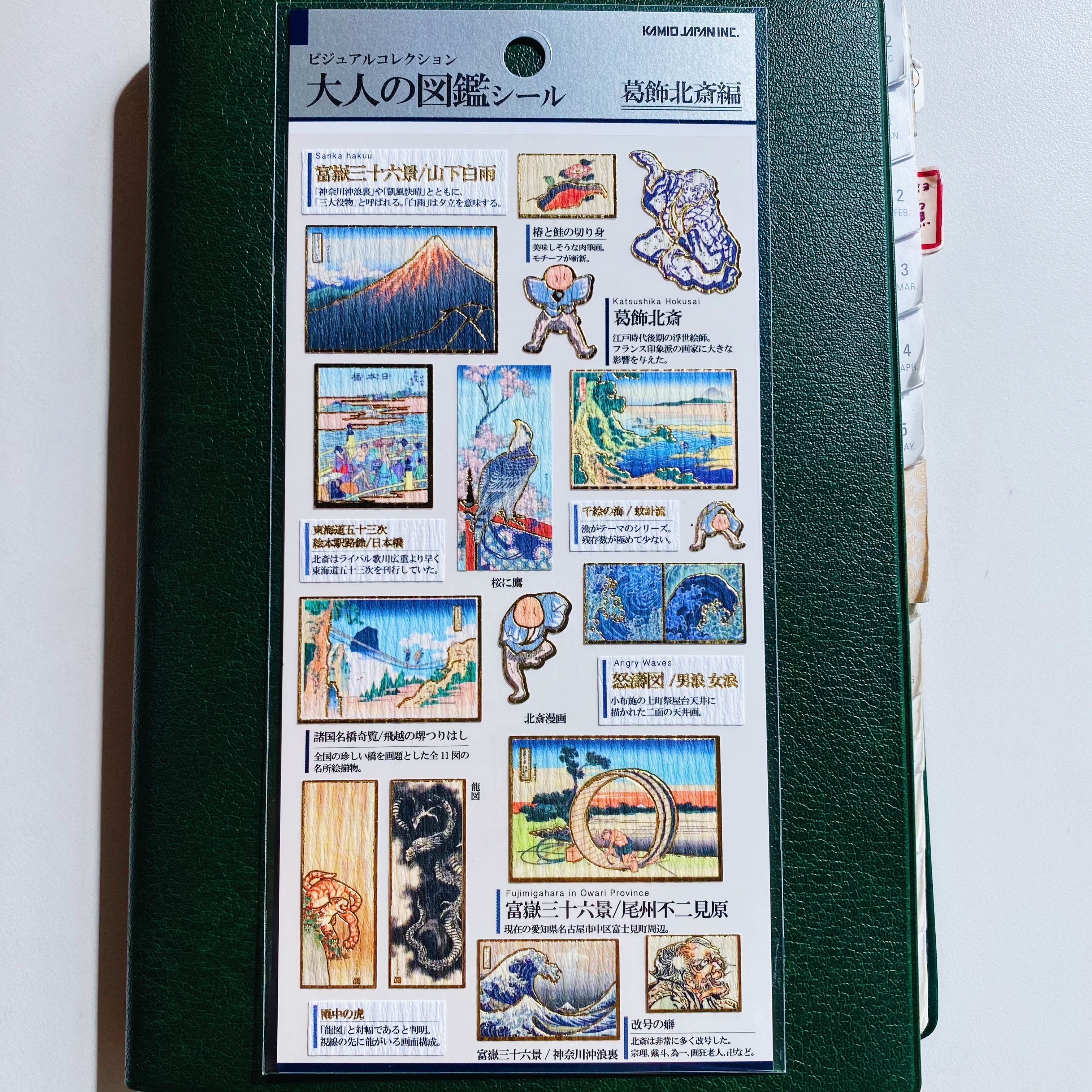 葛飾北齋 Kamio 大人的圖鑑系列 金箔壓印手帳貼紙