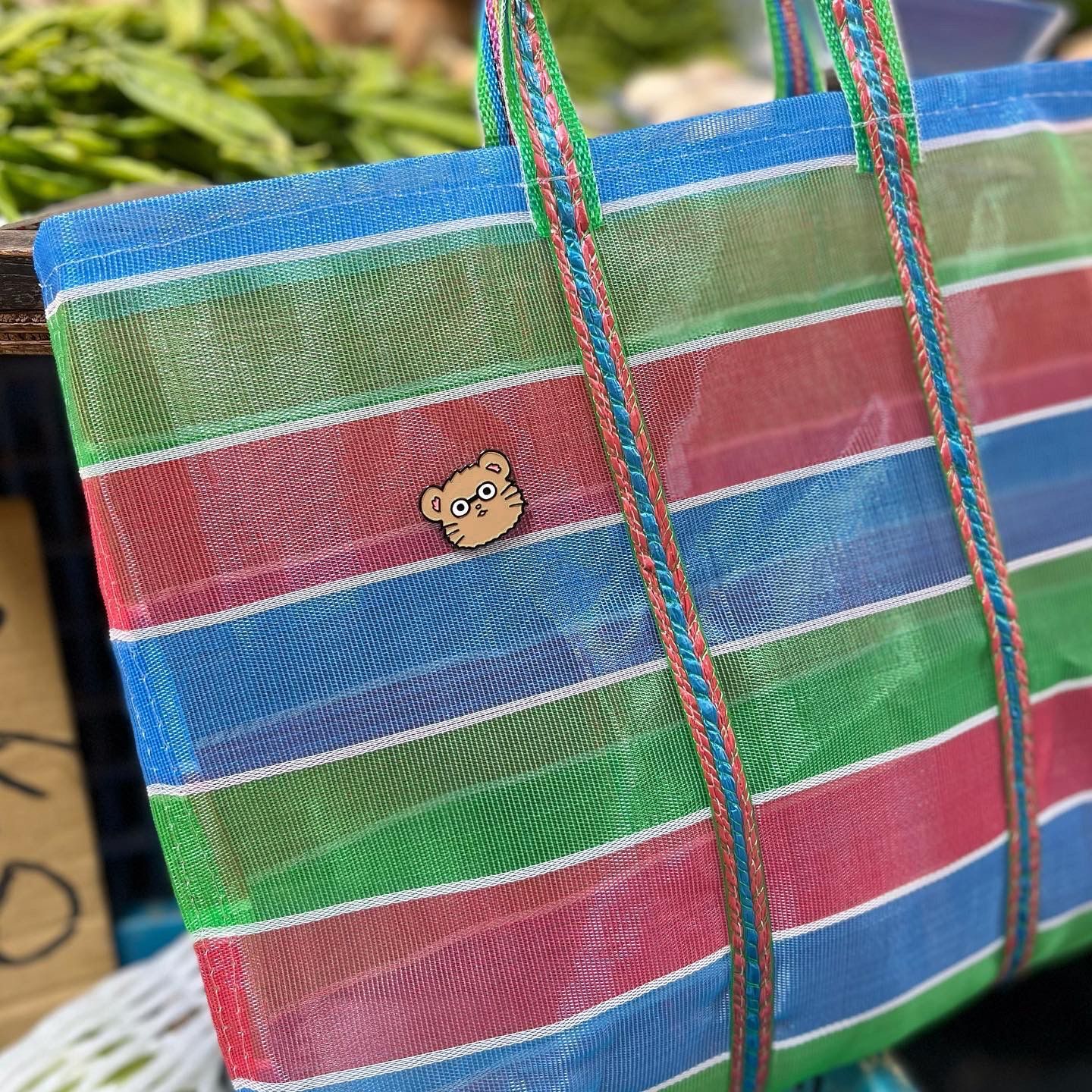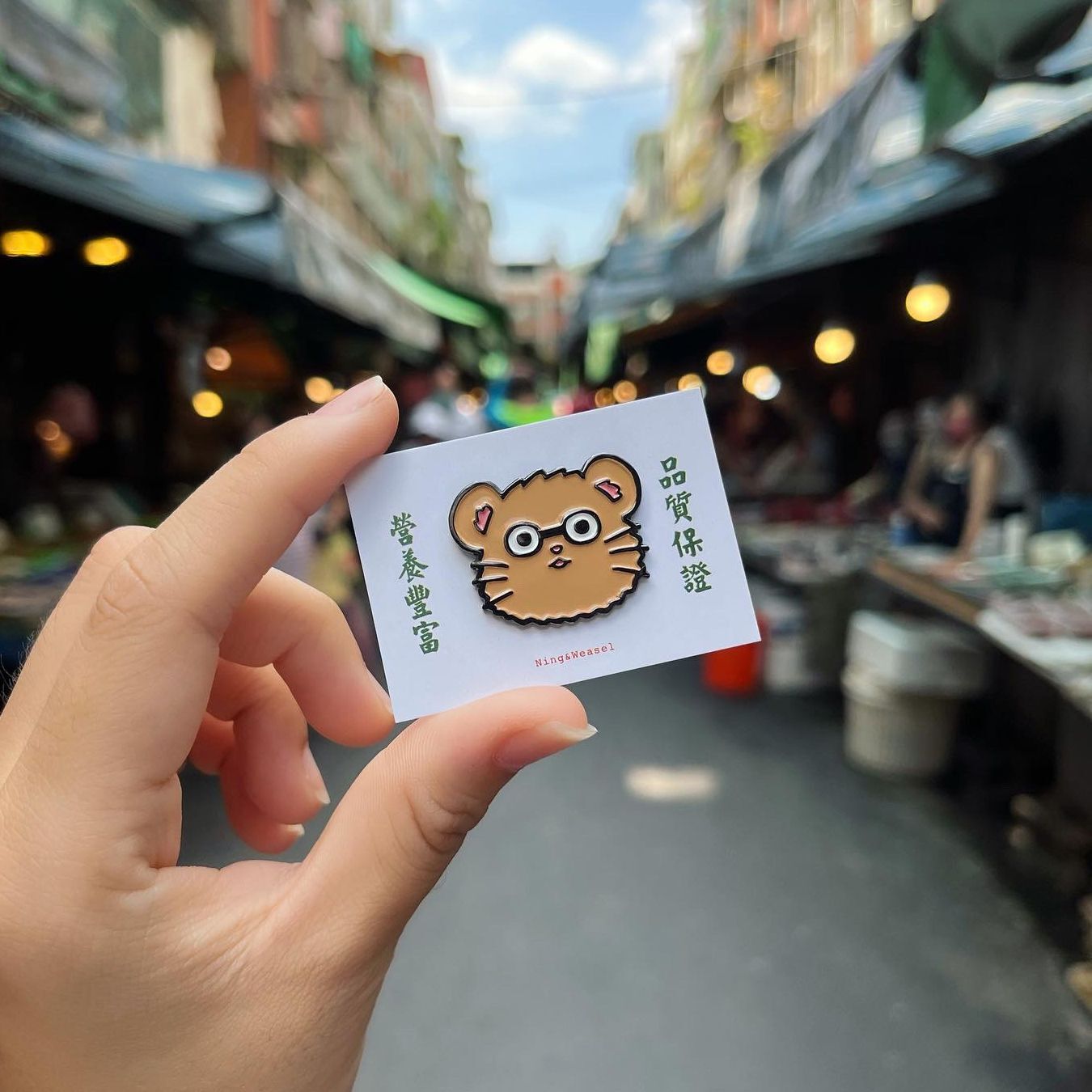 包裝的靈感來自市場的水果紙箱,別在包包上,讓黃鼠狼陪伴你街道散步