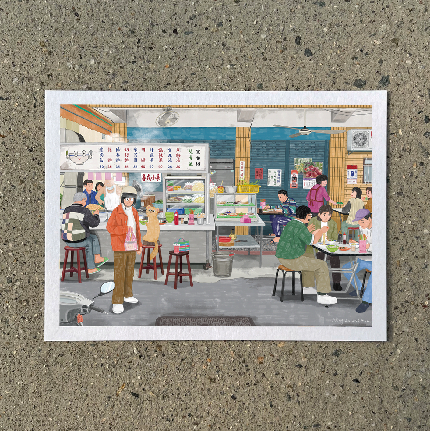 無名攤販(小吃店)_活所在系列 插畫明信片|羅寗 Lo Ning