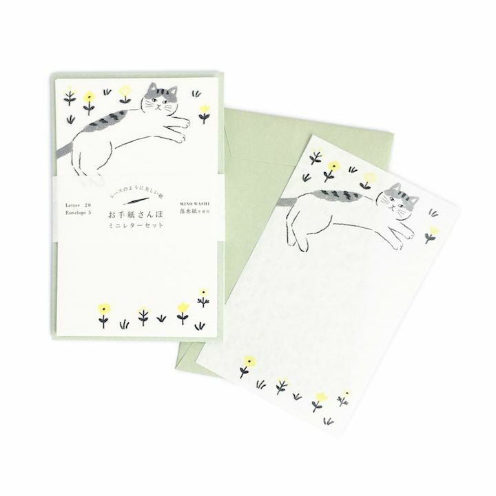 躺著的貓貓 美濃和紙信紙組|日本古川紙工