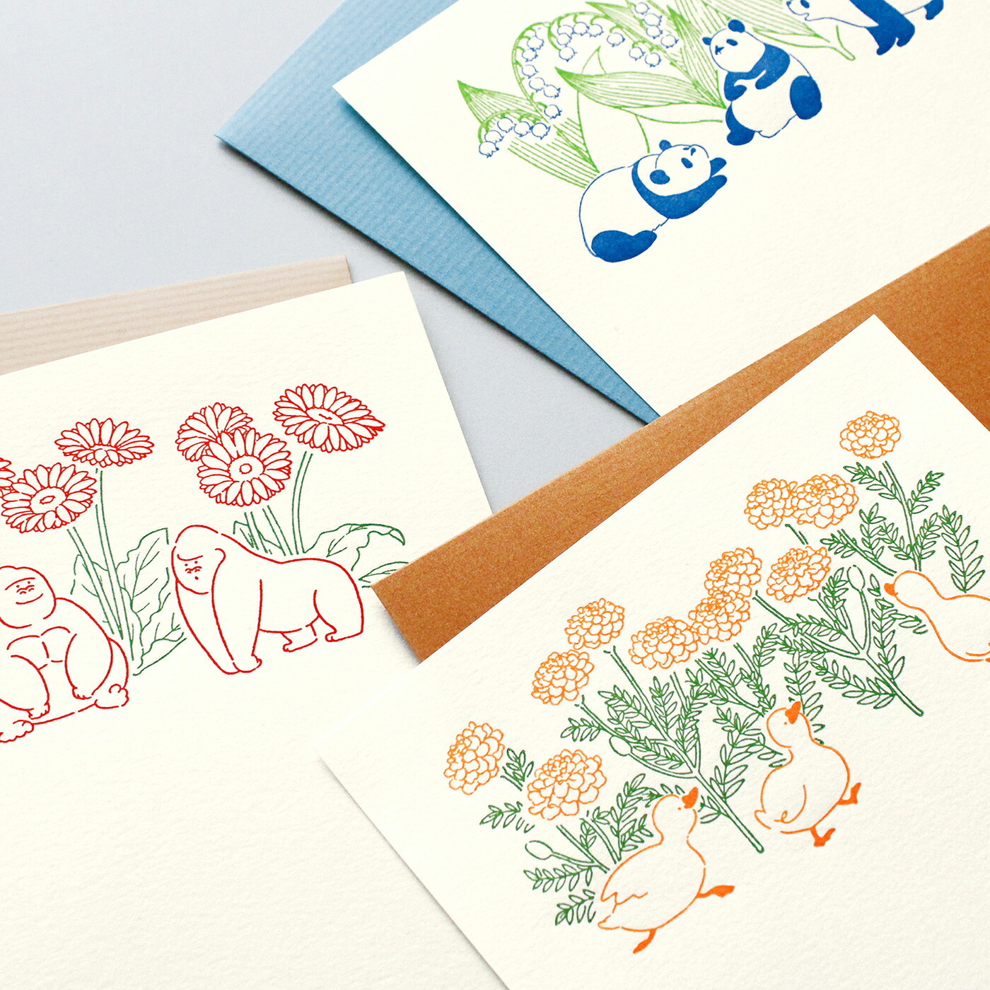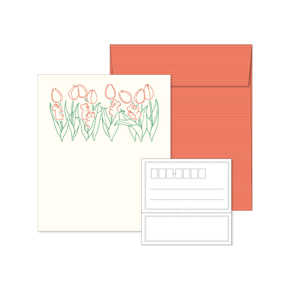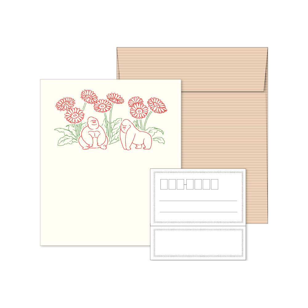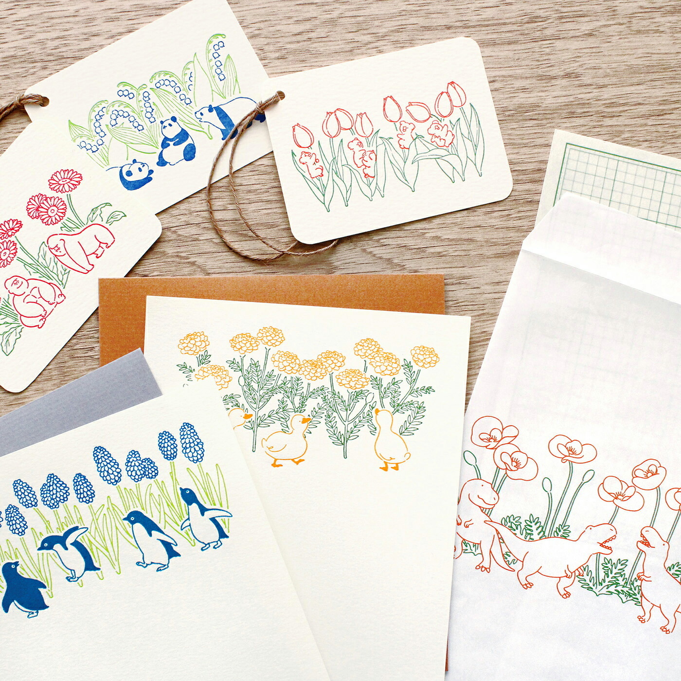 花田與動物 孔版印刷 信紙信封組|日本EL COMMUN