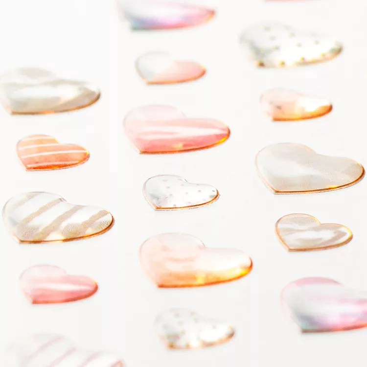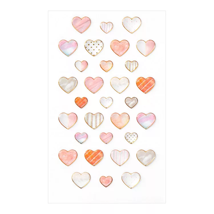 「愛心」 有著如同飾品的愛心形狀貼紙,帶有金色邊框與大理石紋的圖案。