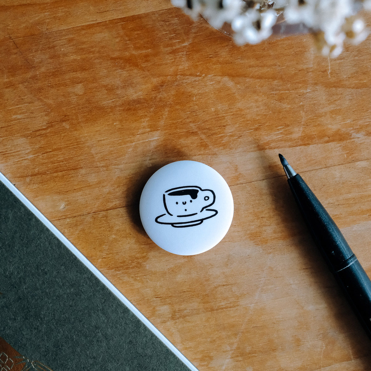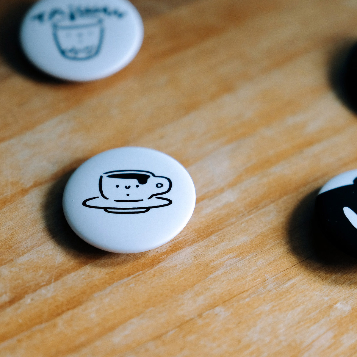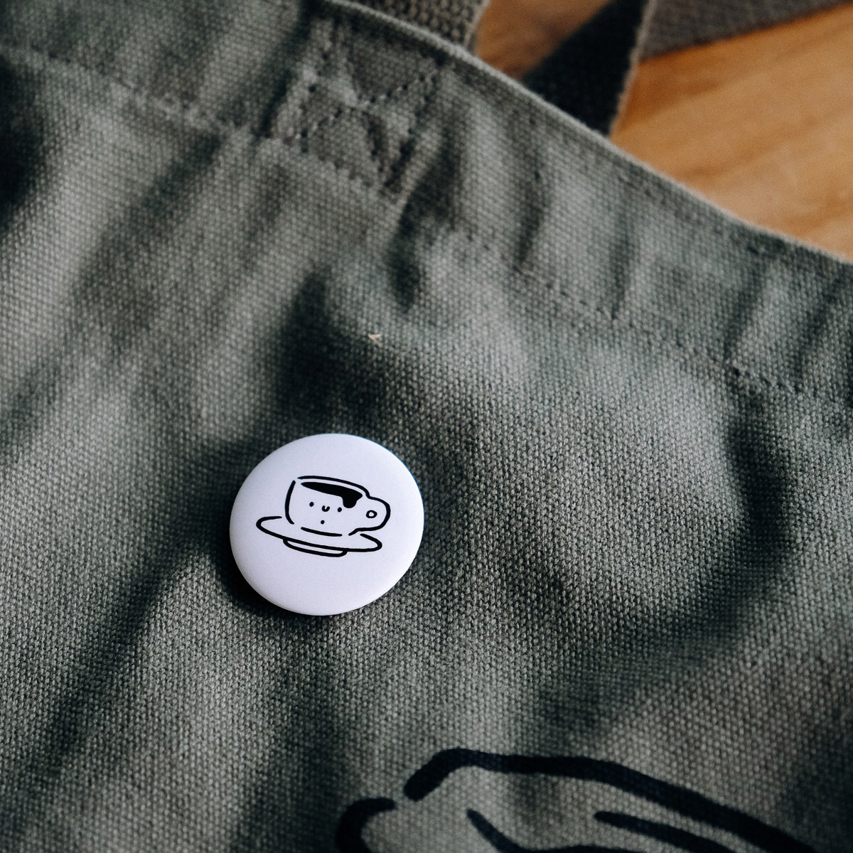 直徑 3.2cm,小巧合宜,適合別在托特包、背包、工作圍裙或衣物上,為日常穿搭增添插畫風格的個性亮點。