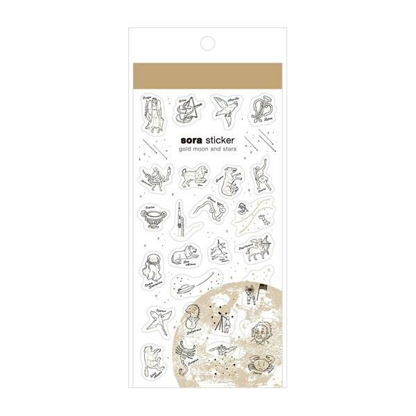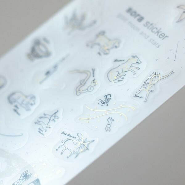 這是一張帶有星座和天空圖案的燙金透明貼紙。
