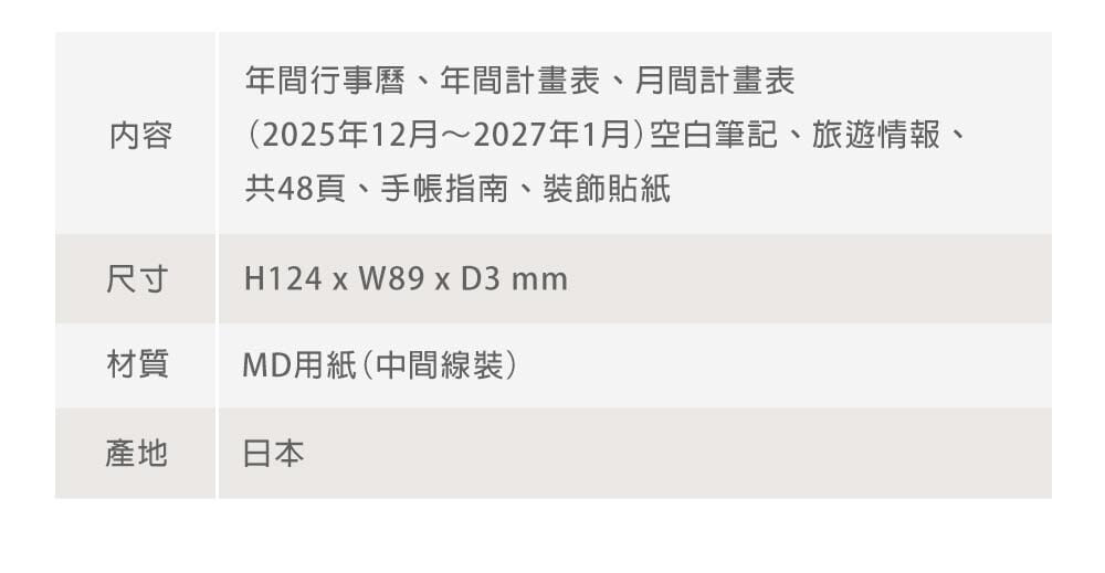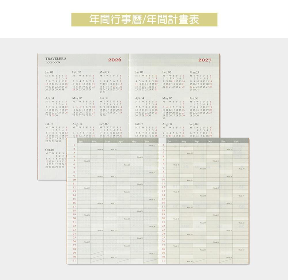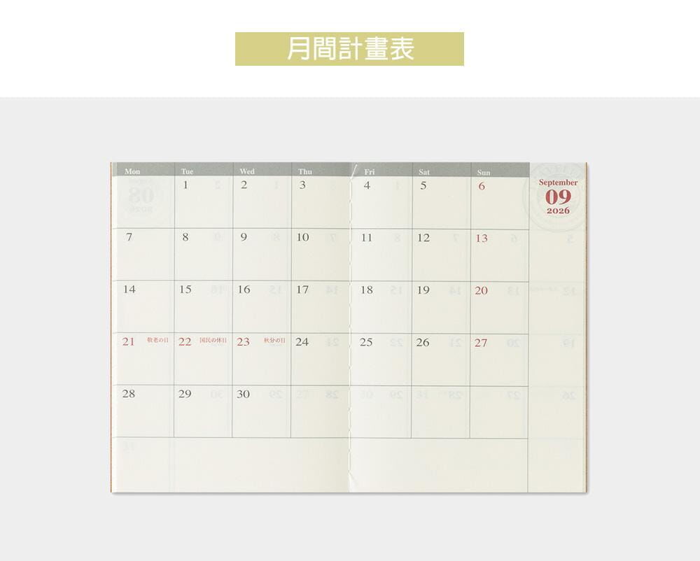 月間手帳(2025年12月-2027年1月)、空白頁、旅行情報,共48頁,採用MD用紙