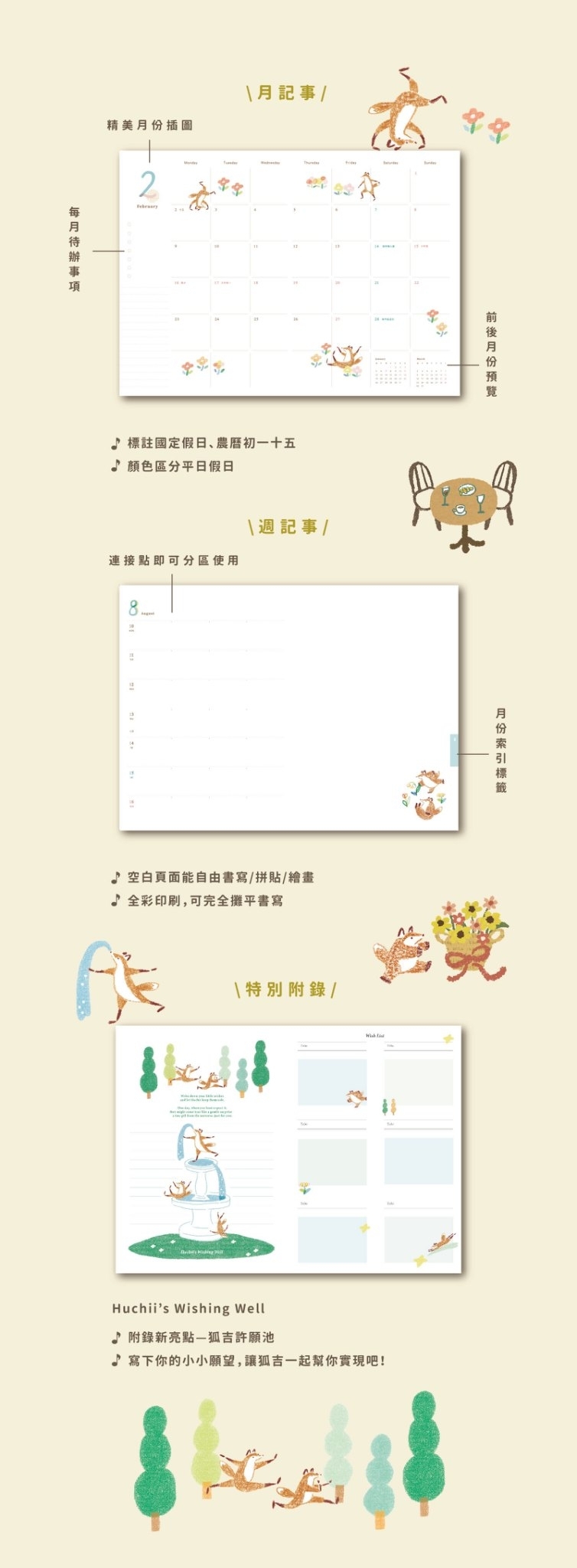 ◇ New!每年附錄新亮點—Huchii Wishing Well 狐吉許願池 寫下你的小小願望,讓狐吉一起幫你實現!