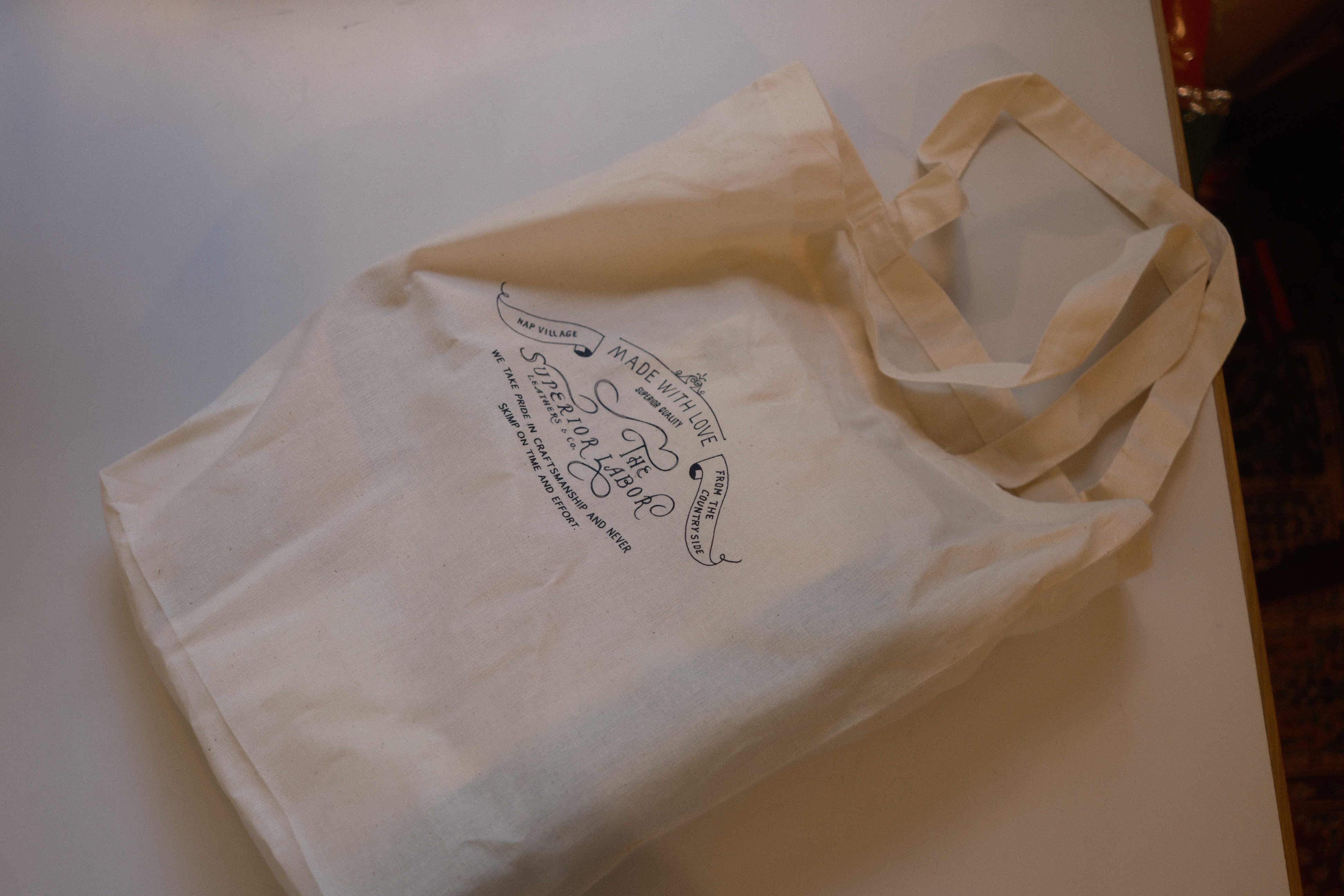 這個手提袋以其簡單而令人驚艷的設計而著稱,製作過程極其注重細節。它配有一個黃銅拉鍊作為開合裝置。外部設有一個開放口袋在前面,而內部則擁有一個雙層口袋,方便儲物。內裡是由天然顏色的帆布製成,並有The Superior Labor的標誌。