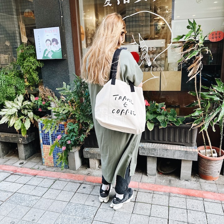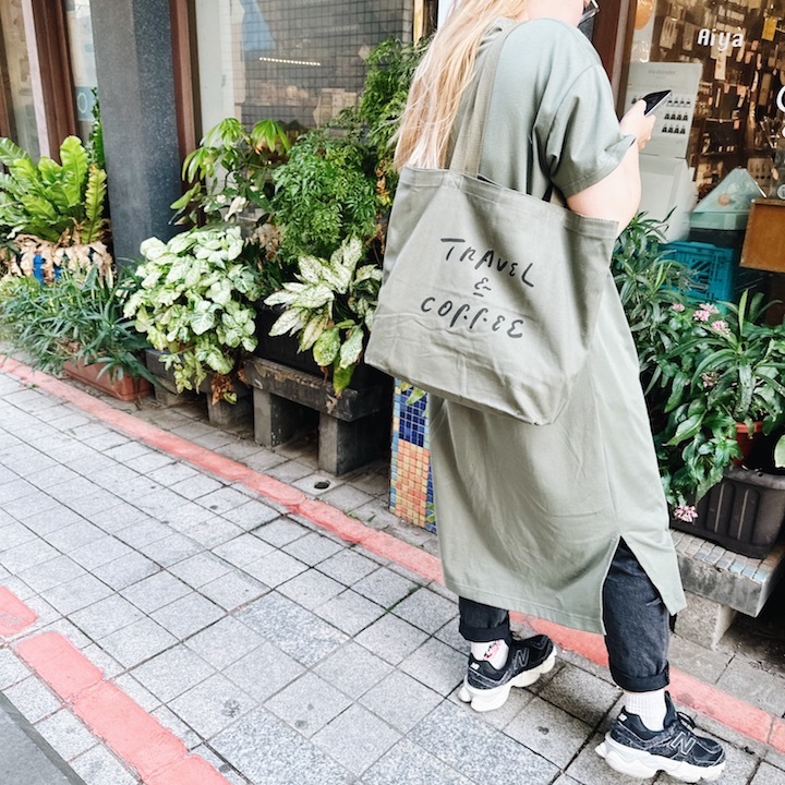 TRAVEL & COFFEE 抹茶色 托特包|WHOSMiNG