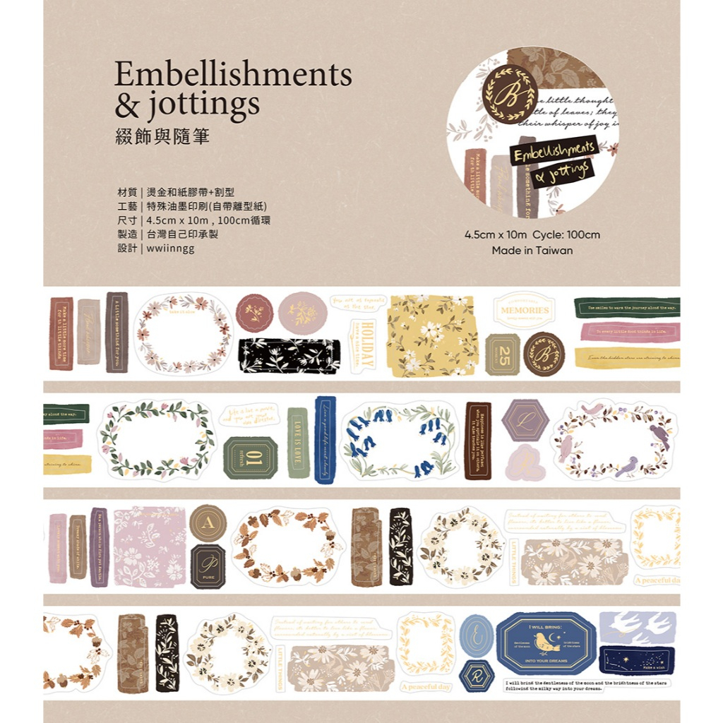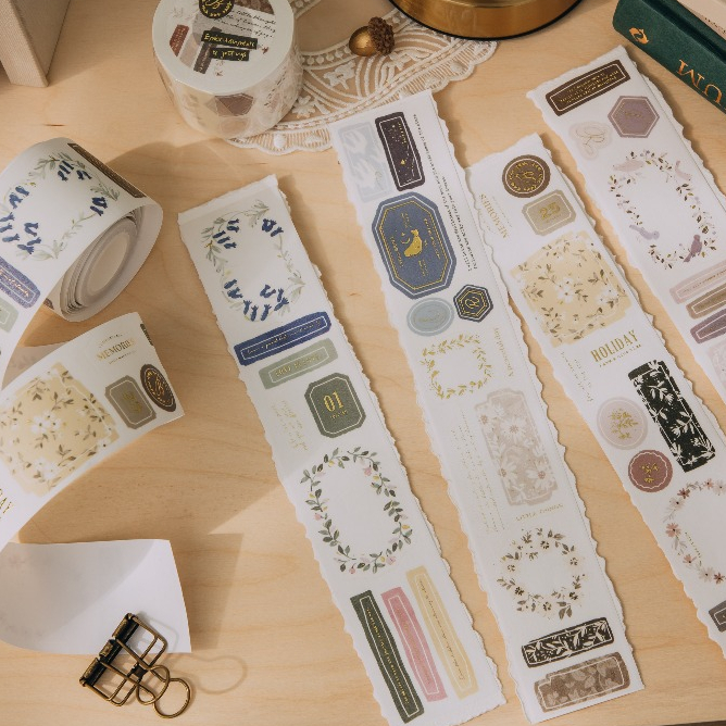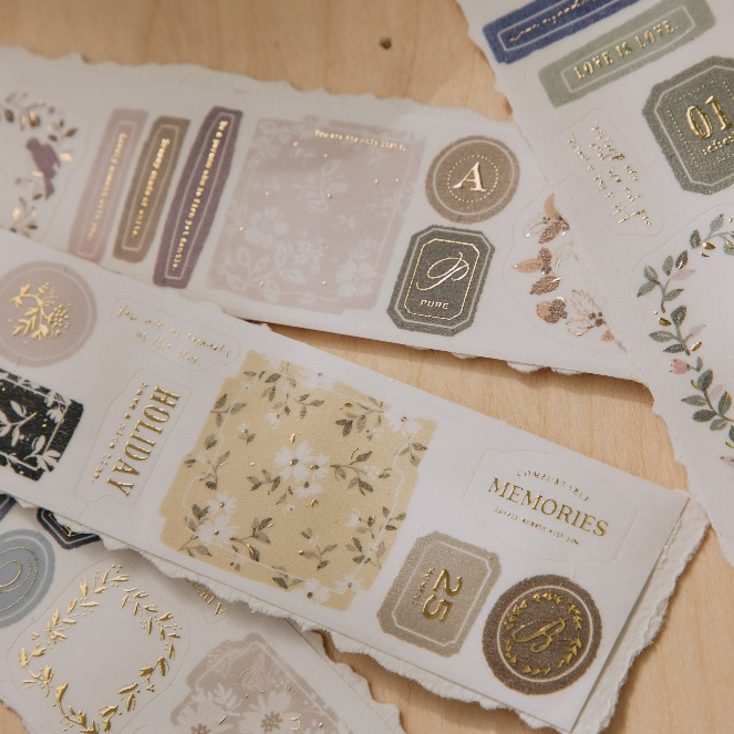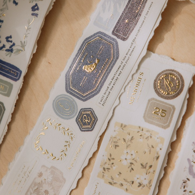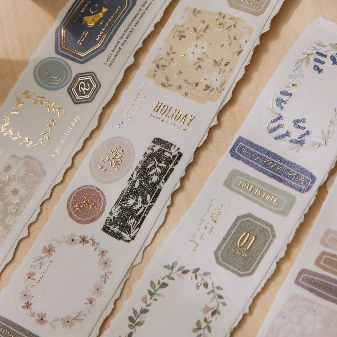 4.5cm x 10m , 100cm循環的割型燙金和紙膠帶,特殊油墨自帶離型紙
